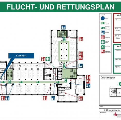 - Erstellung von Rettungswegplänen gem. DIN 23601 als aushangfertig, gerahmt
