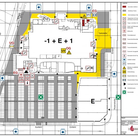 - Erstellung, Abstimmung und Lieferung von Feuerwehrplänen gem. DIN 14095 und jeweiligen, behördlichen Vorgaben